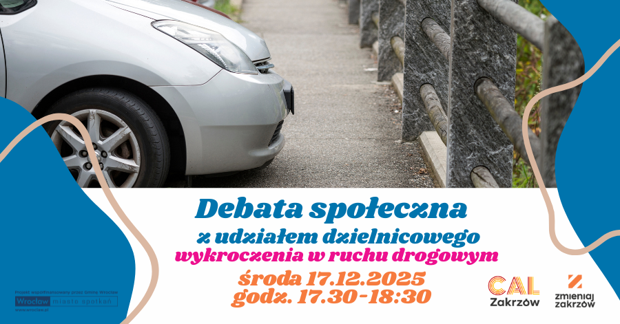 Komisariat Policji Wrocław Osiedle z ul. Kiełczowskiej zaprasza do CAL-u na spotkanie w formie debaty społecznej. Tematem będą szczególnie uciążliwe wykroczenia w ruchu drogowym.