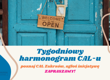 Osobom pragnącym zaplanować sobie kolejny tydzień z CAL-em prezentujemy harmonogram na nadchodzące dni. Relaks, rozwój, ruch i integracja. To wszystko znajdziecie w naszym CAL-u. Godziny…