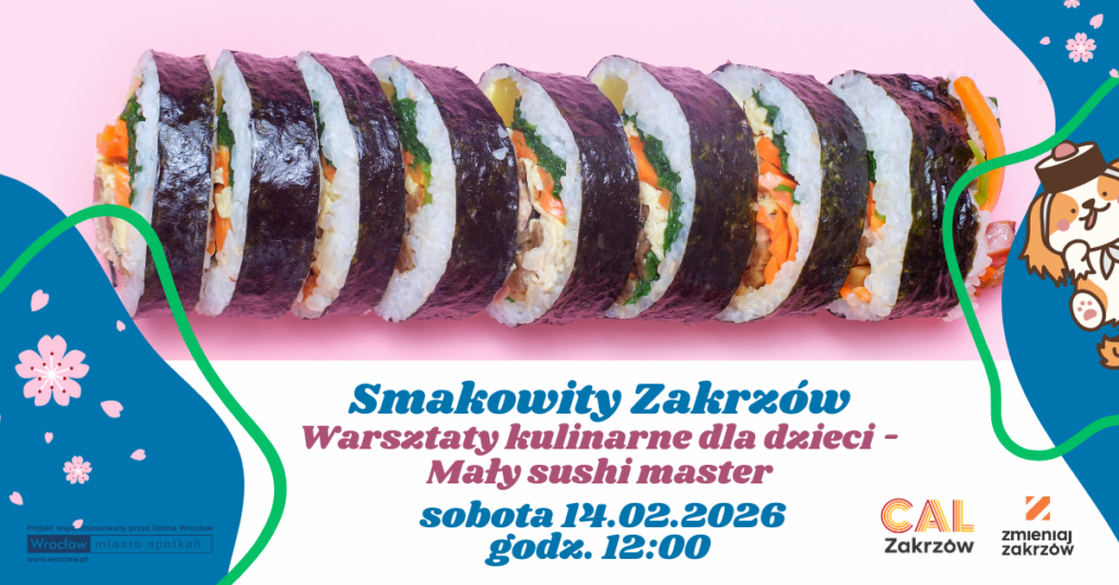 Mamy krótką, ale ważną informację! Z powodu wyjazdów oraz chorób kilku dzieci zwolniło się trochę miejsc na drugą turę warsztatu kulinarnego Smakowity Zakrzów – Mały sushi master. 🍱