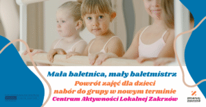 Z radością informujemy, że możemy wznowić zajęcia baletowe dla dzieci! Zajęcia odbywać się będą co piątek w godzinach 16.30–17.15, a pierwsze spotkanie po przerwie zaplanowaliśmy na 7 listopada. To świetna okazja, aby Wasze dzieci rozwijały swoje umiejętności taneczne, poprawiały koordynację ruchową i spędzały czas w kreatywnej, przyjaznej atmosferze. Lekcje zostaną uruchomione, jeśli zbierze się grupa … Czytaj dalej Powrót zajęć baletowych dla dzieci