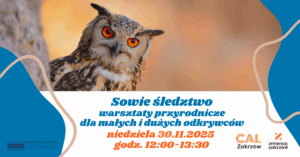 Czy można poznać tajemnice nocnego drapieżnika bez wychodzenia nocą do lasu?Zamień się w detektywa za dnia! Przyjdź na warsztaty przyrodnicze, podczas których przyjrzymy się wypluwkom sów!Te niepozorne kuleczki skrywają fascynujące informacje o zwyczajach tajemniczych nocnych łowców. Podczas zajęć:Dowiemy się, czym są wypluwki i dlaczego ich badanie to ważna część pracy ornitologówKażdy uczestnik otrzyma własną wypluwkę … Czytaj dalej Sowie śledztwo – warsztaty przyrodnicze